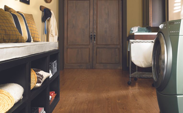 If you’re looking for easy-to-install flooring, then laminate is it! Laminate is known for its simple installation due to its click-and-lock system. While nonprofessionals can install laminate, we highly recommend using a professional when installing this type of flooring. Laundry rooms tend to be very moisture-prone, so you will want to ensure you have a professional install the planks tightly so that no water or excess moisture can seep through.